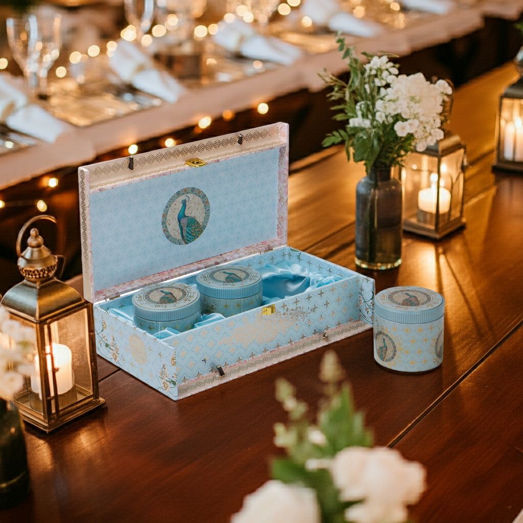 Our Wedding Collection includes bridal trousseau boxes, wedding favor trays, gift hampers, jar hampers, trunk boxes, and luxury packaging options for wedding gifting.